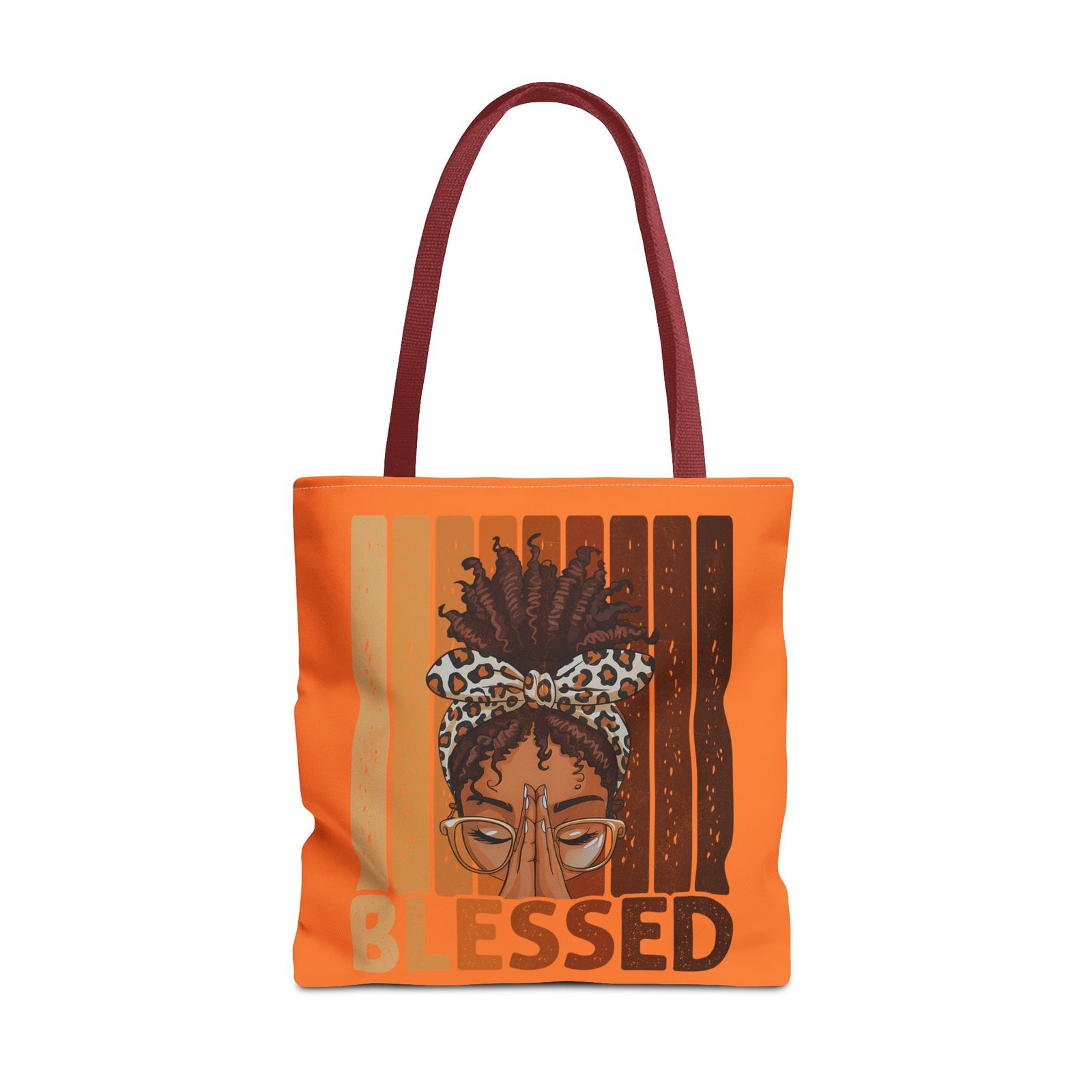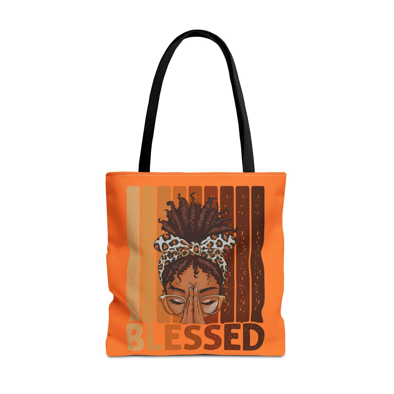 Warm and soulful, this tote carries more than errands — it carries presence. Soft-but-structured polyester holds its shape while the boxed corners give roomy depth for market hauls, notebooks, or a small altar. The front artwork shows a calm, crown-like hairstyle framed by warm, wood-toned stripes and the word “BLESSED,” a quiet reminder to move through the day with gratitude. Reinforced handle stitching and a laminated inner layer mean this bag travels reliably between coffee runs, library stops, and community gatherings.