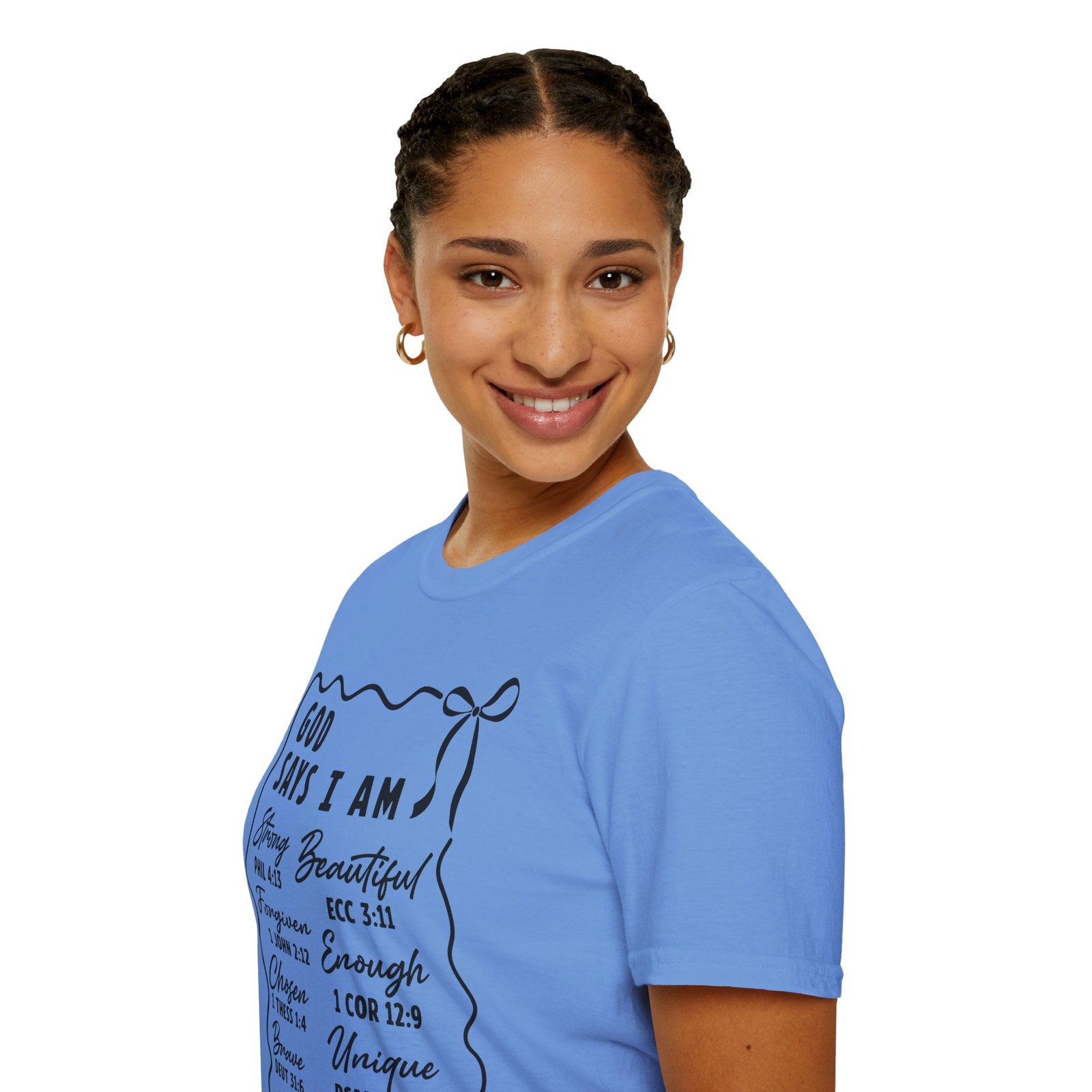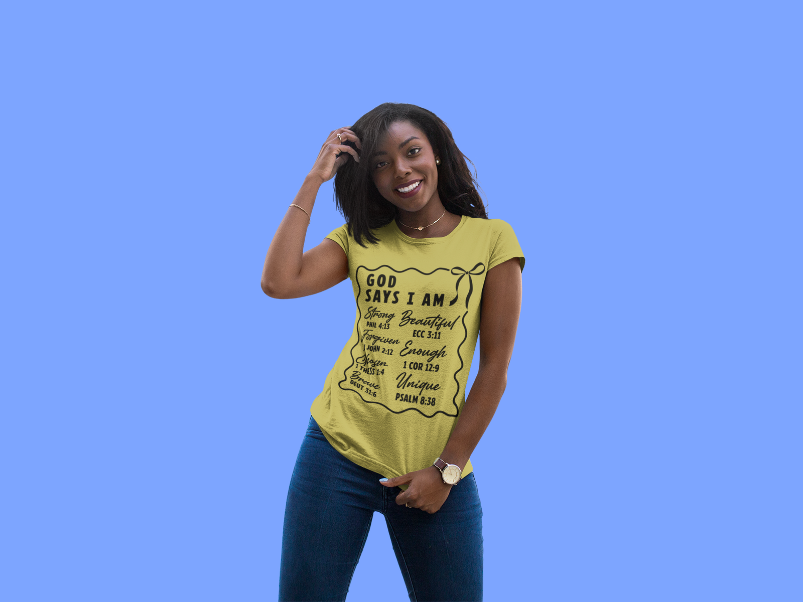 Christian Faith T-Shirt — “God Says I Am” Inspirational Scripture Tee