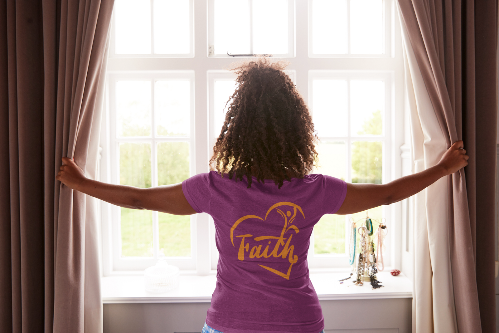 “Faith” emblem. It’s the kind of shirt you reach for on slow Sunday mornings, community gatherings, or when you want a gentle reminder of hope and gratitude. The classic crew neck and relaxed silhouette layer easily under a cardigan or stand alone with jeans. Wear it to share a calm, uplifting presence without saying a word.