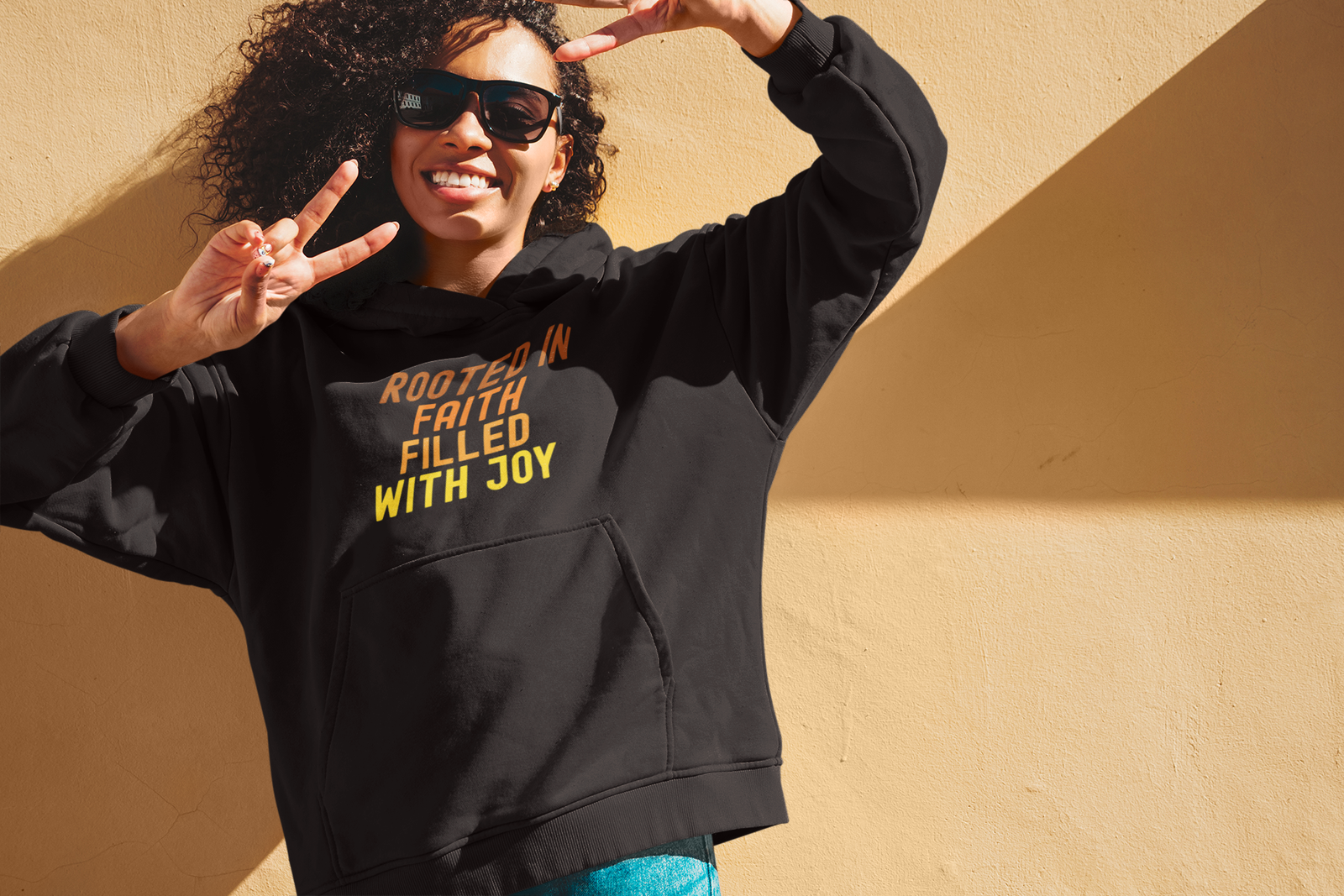 This hoodie speaks like a quiet Sunday morning — steady, warm, and rooted. The message “Rooted in Faith, Filled with Joy” sits close to the heart, a gentle reminder you can reach for when mornings are hurried or evenings slow. It layers easily over tees for brisk walks to church, weekend coffee runs, or low-key fellowship nights. The roomy kangaroo pocket keeps hands tucked and warm; the double-lined hood and color-matched drawcord feel thoughtful, not fussy. It drifts naturally into the wardrobe of someone who lives faith plainly: reaching out, celebrating small mercies, and wearing comfort as testimony. For house gatherings, mission trips, or quiet devotional time, this hoodie carries a calm confidence and a steady softness that settles the day.
